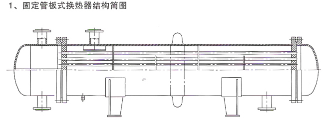 固定管板式換熱器適用于溫差不大或溫差較大但殼程壓力不高以及殼程結垢不嚴重或能用化學清洗的場合,結構簡單而緊湊,材料消耗量小。